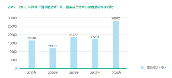 2023年,“图书馆之城”统一服务各成员馆联合推广全民阅读,开展读者活动2.8万场次,参与读者2677.34万人次,同比分别增长62.57%、43.71%。
