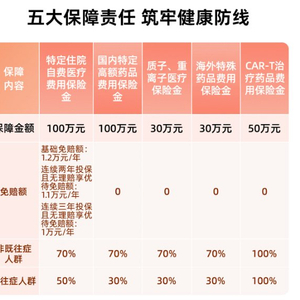2024版沪惠保仍坚持“低保费、高保障、广覆盖”的特点,涵盖特定住院自费医疗费用保险金、国内特定高额药品费用保险金、质子重离子医疗保险金、CAR-T治疗药品费用保险金、海外特殊药品费用保险金等五大保障责任,累计保障额度最高可达310万元。