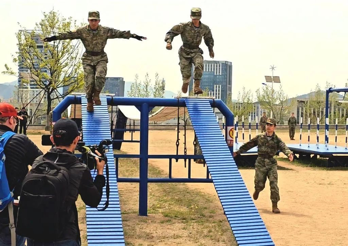 在海军潜艇学院,有台湾媒体注意到有学员示范渡海登岛四百米十项障碍训练与手旗操作。对此,教官表示,这是正常的体能训练项目之一,训练是为了提高学员的身体素质和综合能力,培养顽强的战斗作风,“我们不针对任何目标”。