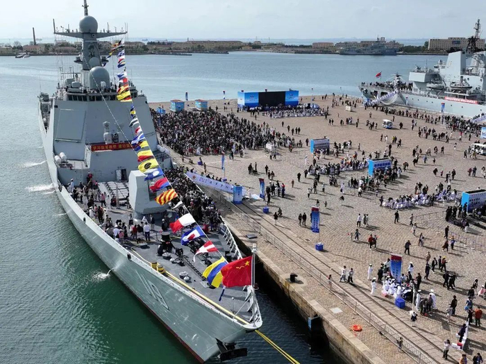 有台湾媒体在报道中还特别介绍称,此次在青岛就展示了正在服役的先进的052D导弹驱逐舰,“大家可以看到装备有相控阵雷达和垂直发射的防空导弹系统,具有比较强的区域防空能力和对舰作战能力”。