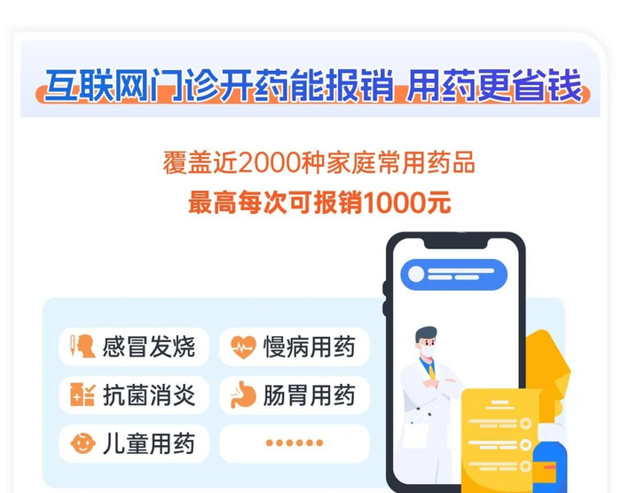 新增互联网门诊指定药品费用可报销,即参保人通过“惠厦保”公众号在指定互联网医院就诊,相关疾病近2000种日常药品可报销,覆盖家庭常备用药和应急用药,单次报销最高1000元,年度累计最高可报销金额1万元。(可通过《惠厦保互联网门诊指定药品目录》查询药品信息)