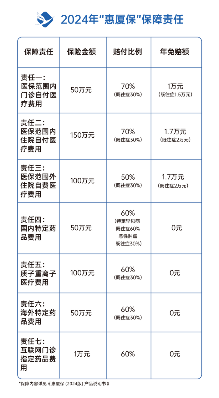 与2023年保障功能相比,2024年“惠厦保”针对保障人群、特药清单、免赔额、保障范围等方面进行四大升级: