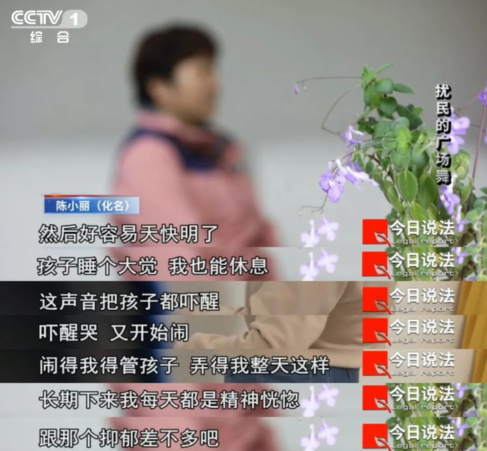 陈小丽(化名)是一位母亲。为照顾6个月大的儿子,她只能白天等孩子睡着了再补觉。自从广场舞队到来,陈小丽的孩子每天早晨都会被噪声吓醒,陈小丽也不得不起来管孩子。时间久了,她感觉自己精神恍惚,一到早晨就害怕广场舞声音。