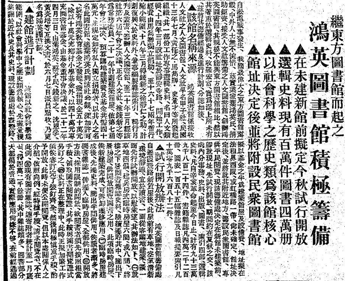 《图书季刊》(1940年第2期106页)学术及出版消息:上海合众图书馆之创设