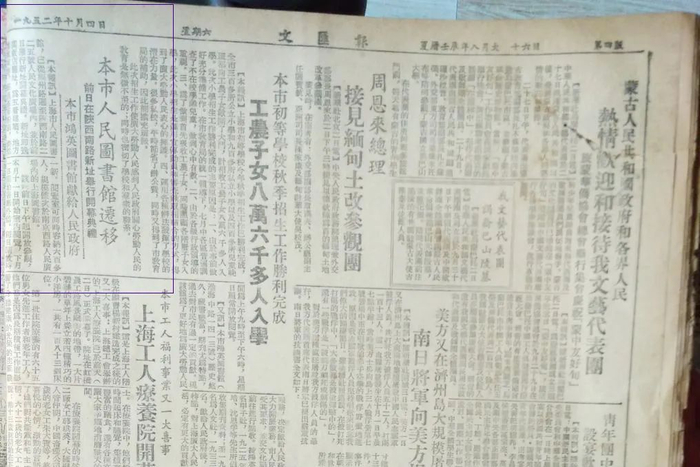 1956年,市文化局征用藏书楼,属上海图书馆的组成部分,将原来上海合众图书馆、鸿英图书馆等馆所收藏的报刊、地方志等都集中到徐家汇藏书楼。藏书达100余万册,报纸有3600余种。