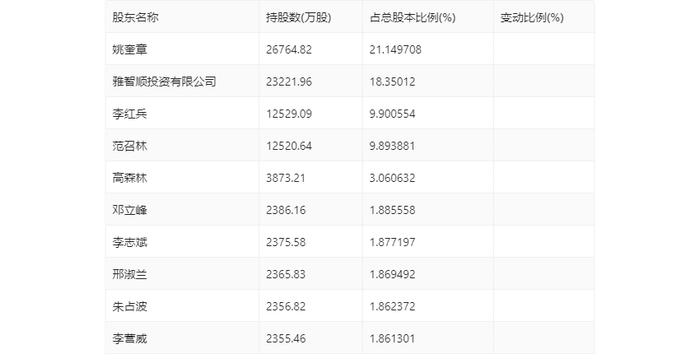 年报显示,2023年年末公司十大流通股东中,持股最多的为姚奎章,占比21.15%。十大流通股东名单相比2023年三季报维持不变。在具体持股比例上,李志斌持股有所上升。
