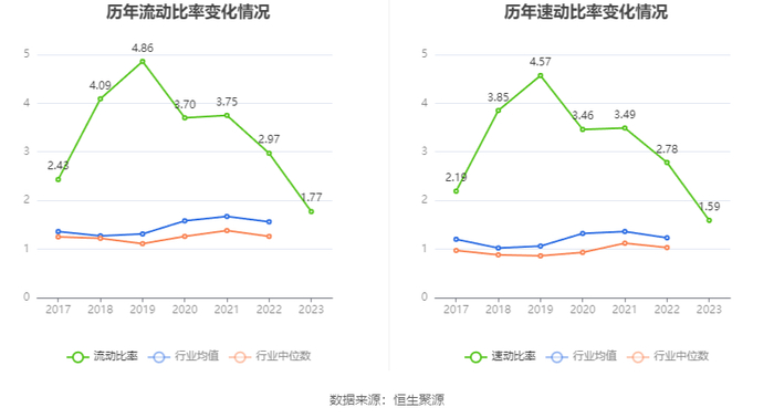 2023年,公司流动比率为1.77,速动比率为1.59。