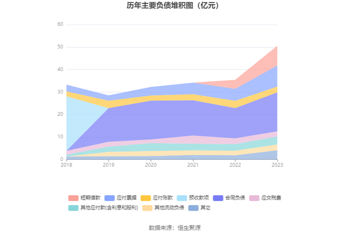 负债重大变化方面,截至2023年年末,公司短期借款较上年末增加119.25%,占公司总资产比重上升2.78个百分点;应付票据较上年末增加76.40%,占公司总资产比重上升2.30个百分点;合同负债较上年末增加28.64%,占公司总资产比重上升1.80个百分点;应付账款较上年末减少20.44%,占公司总资产比重下降0.55个百分点。