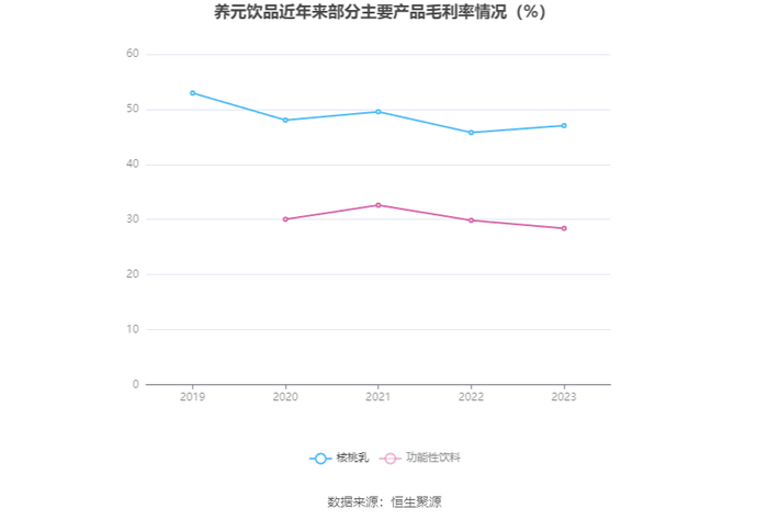 分产品看,核桃乳、功能性饮料2023年毛利率分别为47.04%、28.39%。