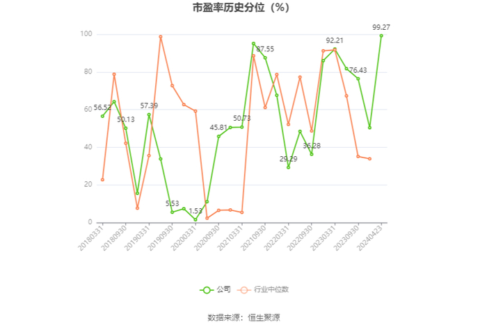 市盈率为负时,不显示当期分位数,会导致折线图中断。