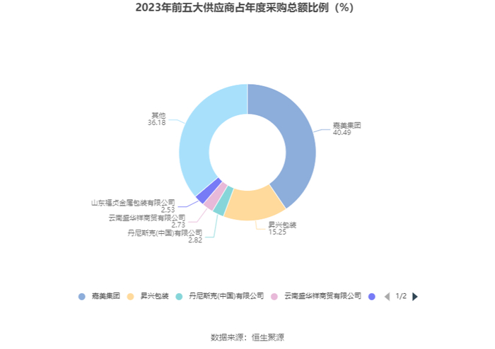 报告期内,公司前五大客户合计销售金额1.67亿元,占总销售金额比例为2.71%,公司前五名供应商合计采购金额19.67亿元,占年度采购总额比例为63.82%。