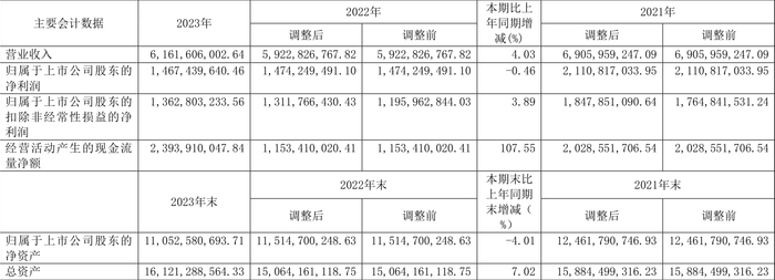 数据显示,2023年公司加权平均净资产收益率为13.22%,较上年同期增长0.71个百分点;公司2023年投入资本回报率为11.53%,较上年同期下降0.06个百分点。