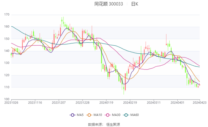 同花顺:2024年第一季度净利润1.04亿元 同比下降15.03%