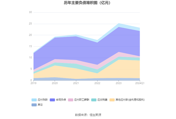 负债重大变化方面,截至2024年一季度末,公司应付职工薪酬较上年末减少71.69%,占公司总资产比重下降1.42个百分点;其他应付款(含利息和股利)较上年末减少3.30%,占公司总资产比重上升0.91个百分点;应付账款较上年末减少12.69%,占公司总资产比重不变;合同负债较上年末增加1.31%,占公司总资产比重上升1.83个百分点。