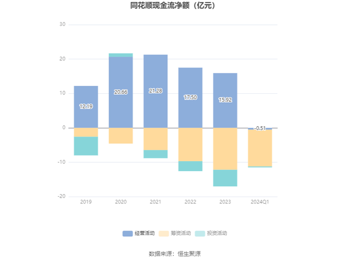 2024年第一季度,公司经营活动现金流净额为-5049.87万元,同比减少1.26亿元;筹资活动现金流净额-10.71亿元,同比增加1.46亿元;投资活动现金流净额-2691.69万元,上年同期为-8367.3万元。