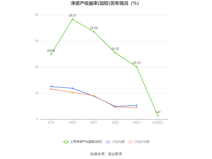 数据显示,2024年第一季度公司加权平均净资产收益率为1.41%,较上年同期下降0.26个百分点;公司2024年第一季度投入资本回报率为0.54%,较上年同期下降0.61个百分点。