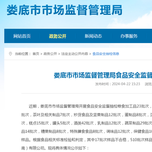 娄底市市场监督管理局食品安全监督抽检情况公告(2024年第2号)
