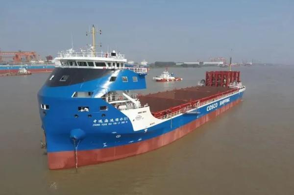 在2023年度央企十大国之重器评选中,“全球首制700TEU纯电池动力集装箱船顺利试航”入选,此船后正式命名为“中远海运绿水01”。