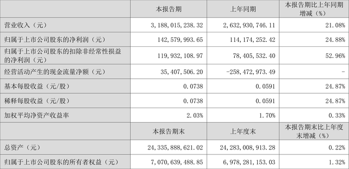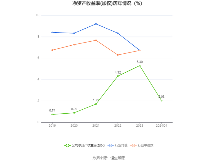 数据显示,2024年第一季度公司加权平均净资产收益率为2.03%,较上年同期增长0.33个百分点;公司2024年第一季度投入资本回报率为1.67%,较上年同期增长0.24个百分点。