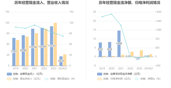 2024年第一季度,公司营业收入现金比为83.12%,净现比为24.83%。