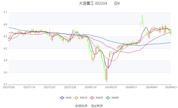 大连重工:2024年第一季度净利润1.43亿元 同比增长24.88%