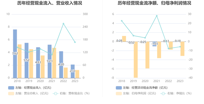 2023年,公司营业收入现金比为168.74%,净现比为-5.61%。