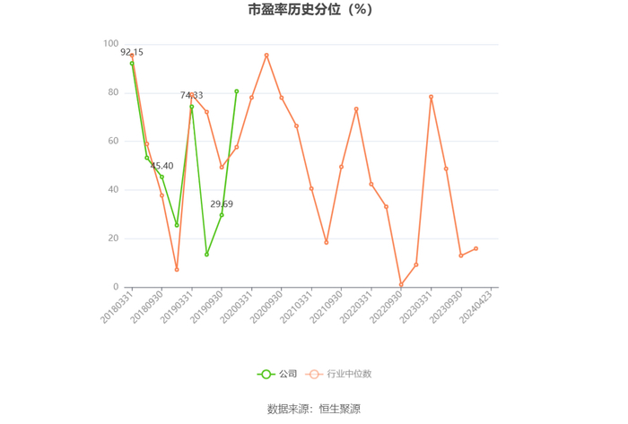 市盈率为负时,不显示当期分位数,会导致折线图中断。