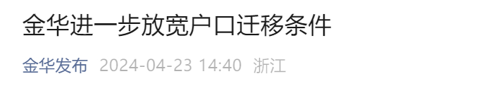 4月23日,据“金华发布”公众号消息,金华进一步放宽户口迁移条件,包括放宽居住落户范围、推行居住证互通互认、试行居住证转户籍、放宽就业落户条件等,明确自今年7月1日起实施。