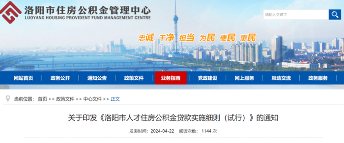 4月22日,洛阳公积金管理中心印发《洛阳市人才住房公积金贷款实施细则(试行)》的通知。