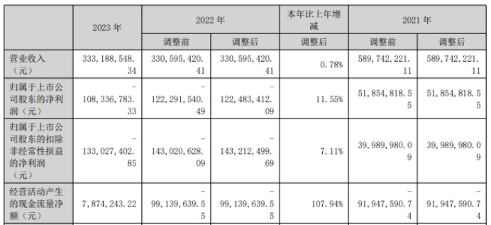 挖贝网4月23日,山水比德 近日发布2023年年度报告,报告期内公司实现营业收入333,188,548.34元,同比增长0.78%;归属于上市公司股东的净利润-108,336,783.33元,较上年同期亏损减少。
