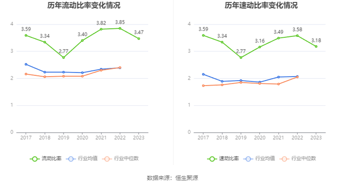 2023年,公司流动比率为3.47,速动比率为3.18。