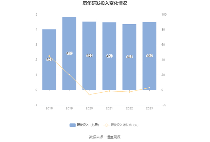 2023年全年,公司研发投入金额为4.52亿元,同比增长3.16%;研发投入占营业收入比例为15.16%,相比上年同期上升0.60个百分点。此外,公司全年研发投入资本化率为48.71%。