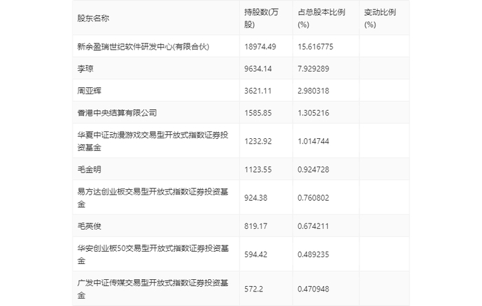 年报显示,2023年年末公司十大流通股东中,新进股东为华安创业板50交易型开放式指数证券投资基金,取代了三季度末的中证500交易型开放式指数证券投资基金。在具体持股比例上,毛金明、易方达创业板交易型开放式指数证券投资基金、毛英俊持股有所上升,香港中央结算有限公司、华夏中证动漫游戏交易型开放式指数证券投资基金、广发中证传媒交易型开放式指数证券投资基金持股有所下降。