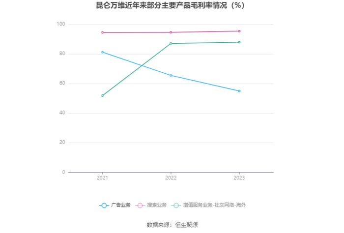 分产品看,广告业务、搜索业务、增值服务业务-社交网络-海外2023年毛利率分别为54.97%、95.40%、87.92%。