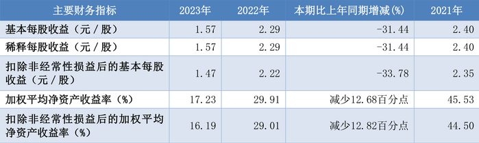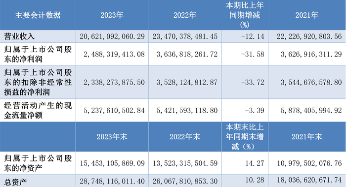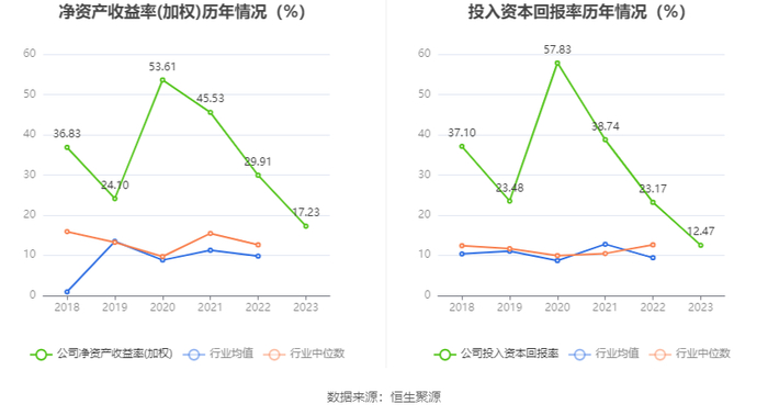 数据显示,2023年公司加权平均净资产收益率为17.23%,较上年同期下降12.68个百分点;公司2023年投入资本回报率为12.47%,较上年同期下降10.70个百分点。