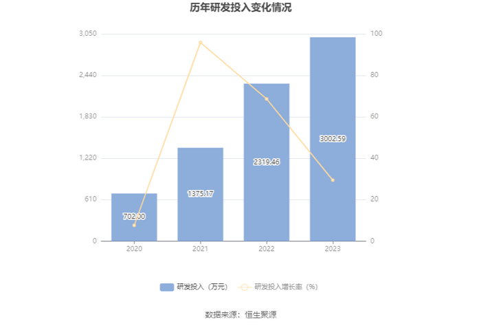 2023年全年,公司研发投入金额为3002.59万元,同比增长29.45%;研发投入占营业收入比例为0.15%,相比上年同期上升0.05个百分点。此外,公司全年研发投入资本化率为0。