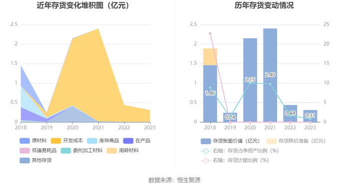 从存货变动来看,截至2023年年末,公司存货账面价值为3061.06万元,占净资产的0.84%。根据财报,公司本期没有计提存货跌价准备。