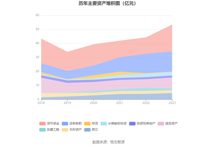 资产重大变化方面,截至2023年年末,公司货币资金较上年末增加65.55%,占公司总资产比重上升9.74个百分点;应收账款较上年末增加2.53%,占公司总资产比重下降4.73个百分点;在建工程较上年末减少41.29%,占公司总资产比重下降2.60个百分点;其他应收款(含利息和股利)较上年末减少35.49%,占公司总资产比重下降0.94个百分点。