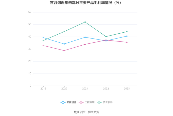 分产品看,勘察设计、工程监理、技术服务2023年毛利率分别为40.51%、35.54%、44.13%。