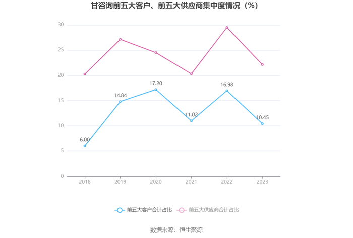 报告期内,公司前五大客户合计销售金额2.50亿元,占总销售金额比例为10.45%,公司前五名供应商合计采购金额1.39亿元,占年度采购总额比例为22.13%。