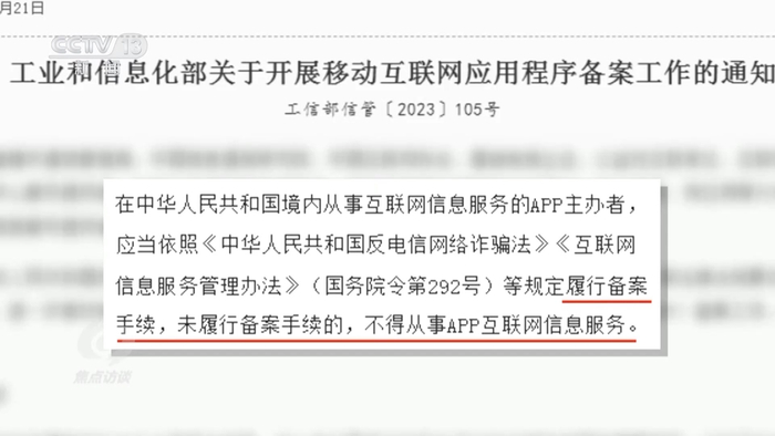 为了进一步加强监管,工信部在2023年8月发出了《关于开展移动互联网应用程序备案工作的通知》,要求在中国境内从事互联网信息服务的APP主办者,应当依照相关规定履行备案手续,未履行备案手续的不得从事APP互联网信息服务。而在今年的4月至6月,电信主管部门组织对APP的备案情况开展监督检查,对仍未履行备案手续的APP将依法进行处置。