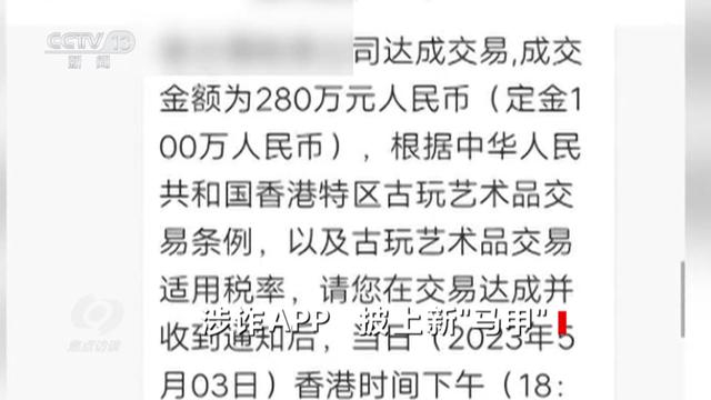 随后,客服人员又让严女士在这个“鉴物”APP上注册了一个账户,并让她存进10元钱,然后再提现。严女士操作很顺利,于是更加相信客服的话,便发送了藏品的照片。几天后,这名客服人员告诉严女士,她的藏品以280万元的价格拍卖成功了,而且买方已经支付了100万元的定金。