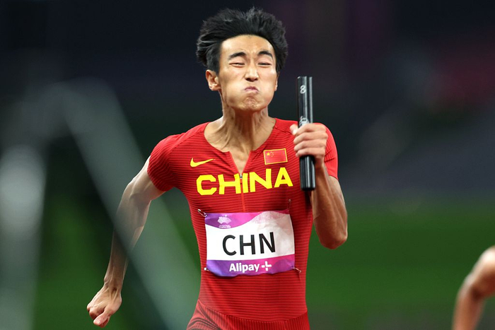 在杭州亚运会上,我国4×100米接力的三位小将在谢震业的带领下一举绝杀日本,拿下冠军。