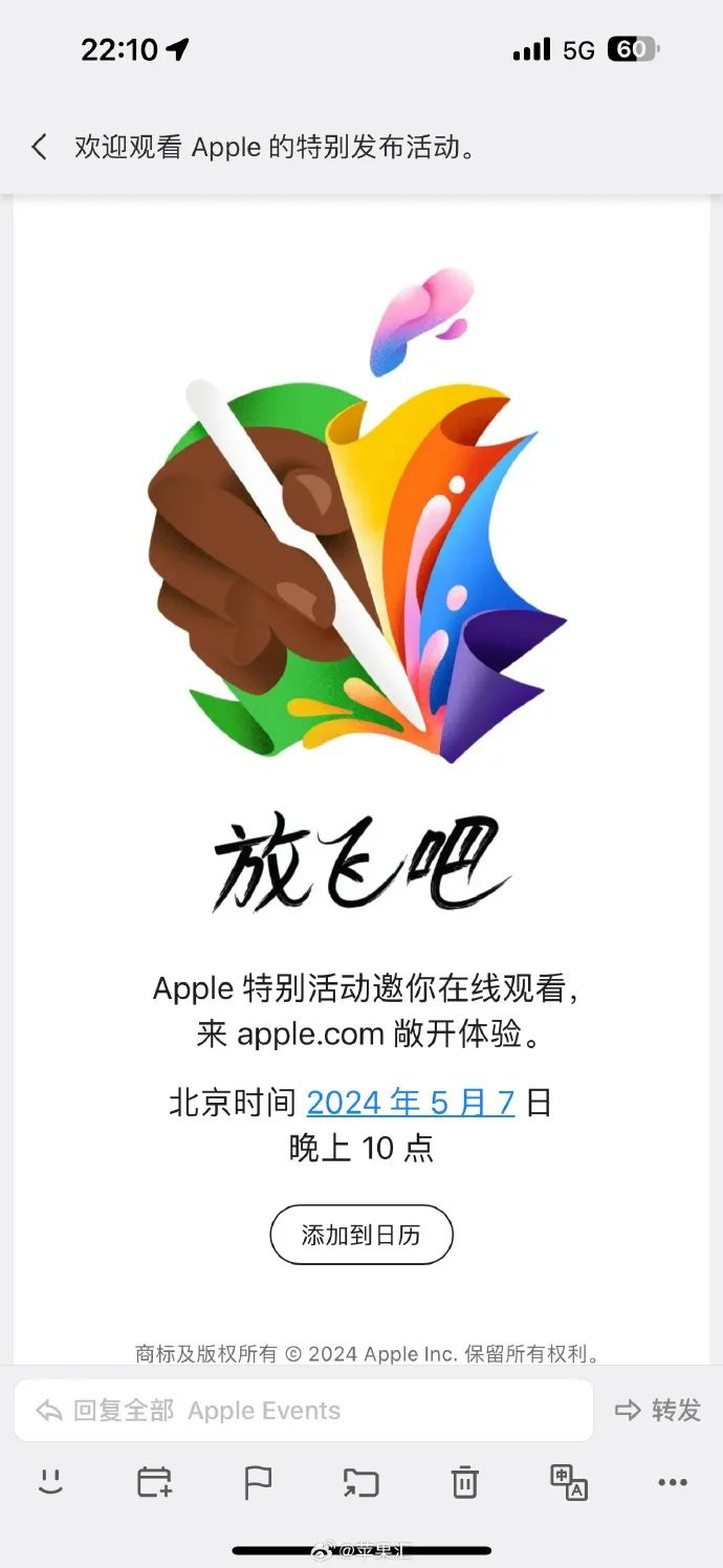 苹果官宣:5月7日,新iPad