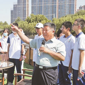通州区政协教卫体和文化文史委主任程行利为学生讲解通州运河文化。 通州区教委供图