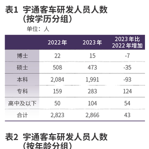 宇通客车的研发人员中,本科及以上的人员减少了5%,其中博士减少了近三分之一;30至40岁的人员减少了7%。研发人员这样的变动令我担忧。