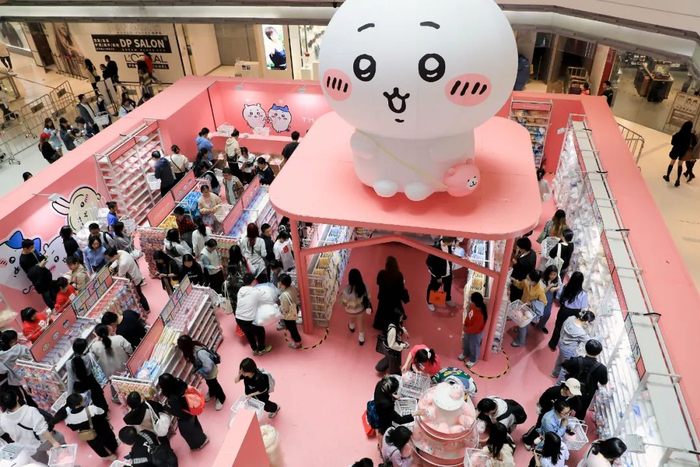 近日,名创优品在上海、北京两地三家商场开设快闪店,联名爆火的日本动漫IP Chiikawa,引发抢购潮。
