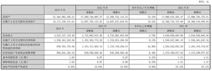 昆仑万维2023年净利为12.58亿元,较上年同期的净利11.53亿元增长9.15%;扣非后净利为6.6亿元,较上年同期的11.55亿元下降42.86%。
