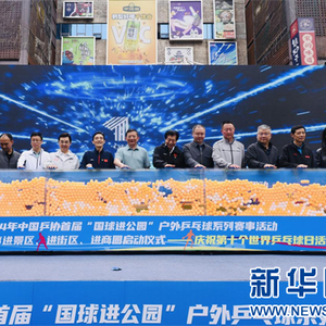 新华网贵阳4月24日电 为庆祝第十个世界乒乓球日,2024年中国乒协首届“国球进公园”户外乒乓球系列赛事活动暨贵州省体育赛事进景区、进街区、进商圈启动仪式在贵阳举行。贵州省体育局党委书记、局长马雷致辞,中国乒乓球协会副主席高亚翔出席并讲话,奥运冠军李晓霞现身活动现场,与市民切磋球技,现场不时传出热烈的喝彩声和掌声。