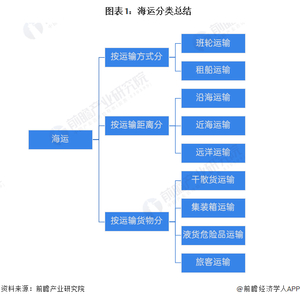 中国海运产业的上游包括船舶与集装箱等运输设备的设计、制造、维修,以及其它海运所需的装备制造;中游的海运服务,包含沿海运输、近海运输和远洋运输服务;下游则主要是有贸易与运输需求的企业。